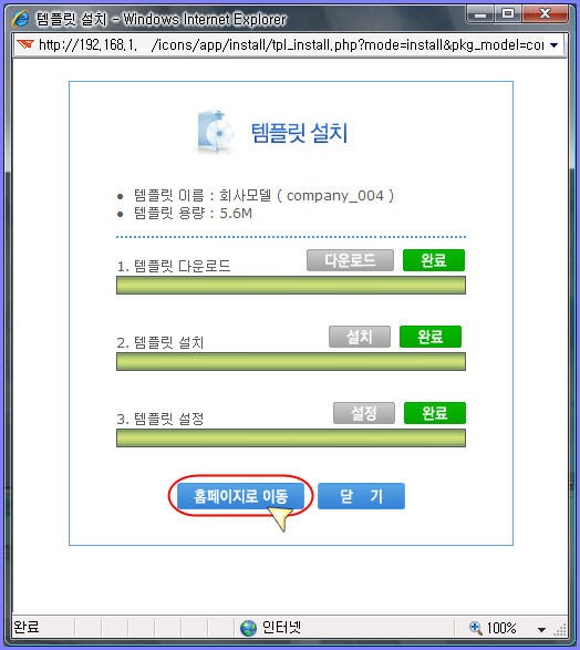 -  "모델설치"를 선택하면 템플릿 설치 페이지가 새창으로 뜨게 됩니다.